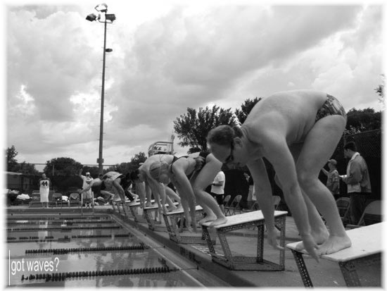 ![]() A heat in 2003. Notice the custom starting blocks made by an age group parent before first meet at Oakton Pool when commercial blocks were delayed. These blocks lasted the whole life of the pool. |