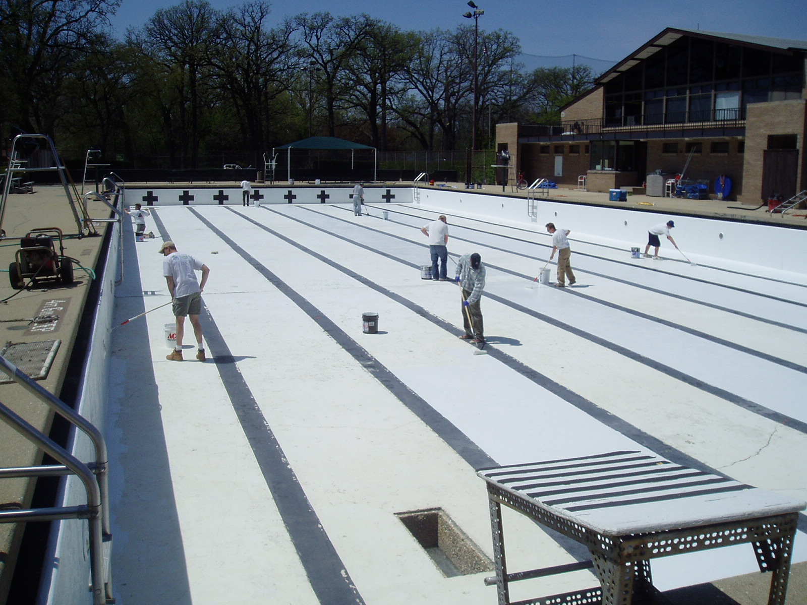 Volunteers from the Park Ridge Penguins paint the pool prior to the 2009 meet. The Park District provided paint and supervised, but refused to paint it themselves. |
